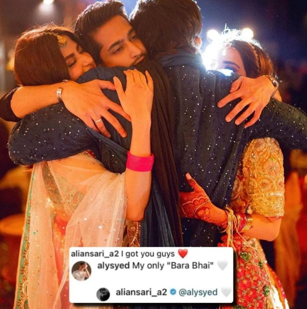 Brother of A-list actresses Sajal Aly and Saboor Aly has made a revelation under the comment section of Ali Ansari’s post. When the Khaani star posted a family hug picture, Ali was quick to comment that he is his only elder brother.