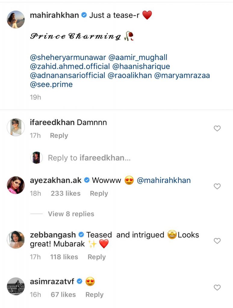 Superstar actresses showered Mahira and team with love and appreciation on social media including Ayeza Khan, Sajal Aly, Saba Qamar, Yumna Zaidi, Ayesha Omar, Humaima Malick and Sakina Samo.