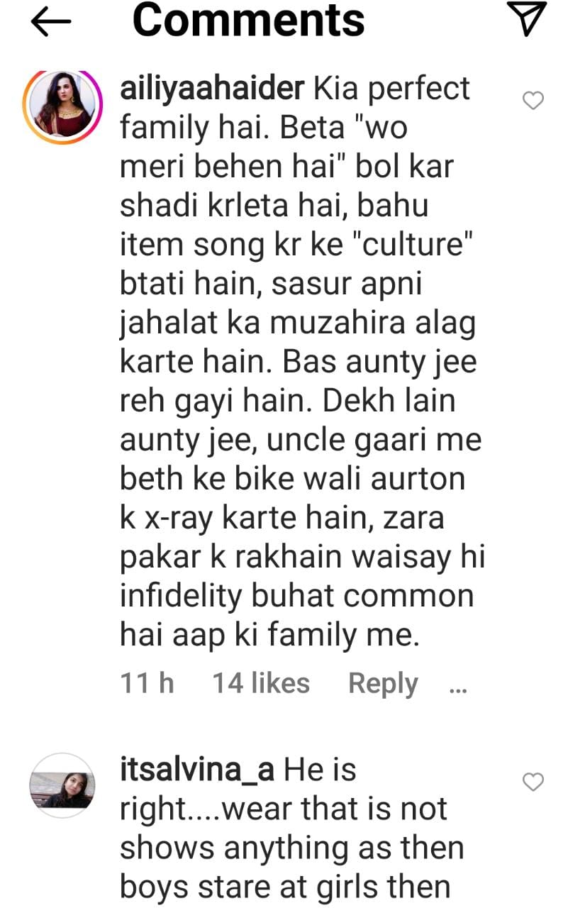After this interview went viral, actor Iffat Omar slammed Behroze on her Instagram story for his stance on women’s choice of clothing. She termed him a hypocrite and an illiterate.