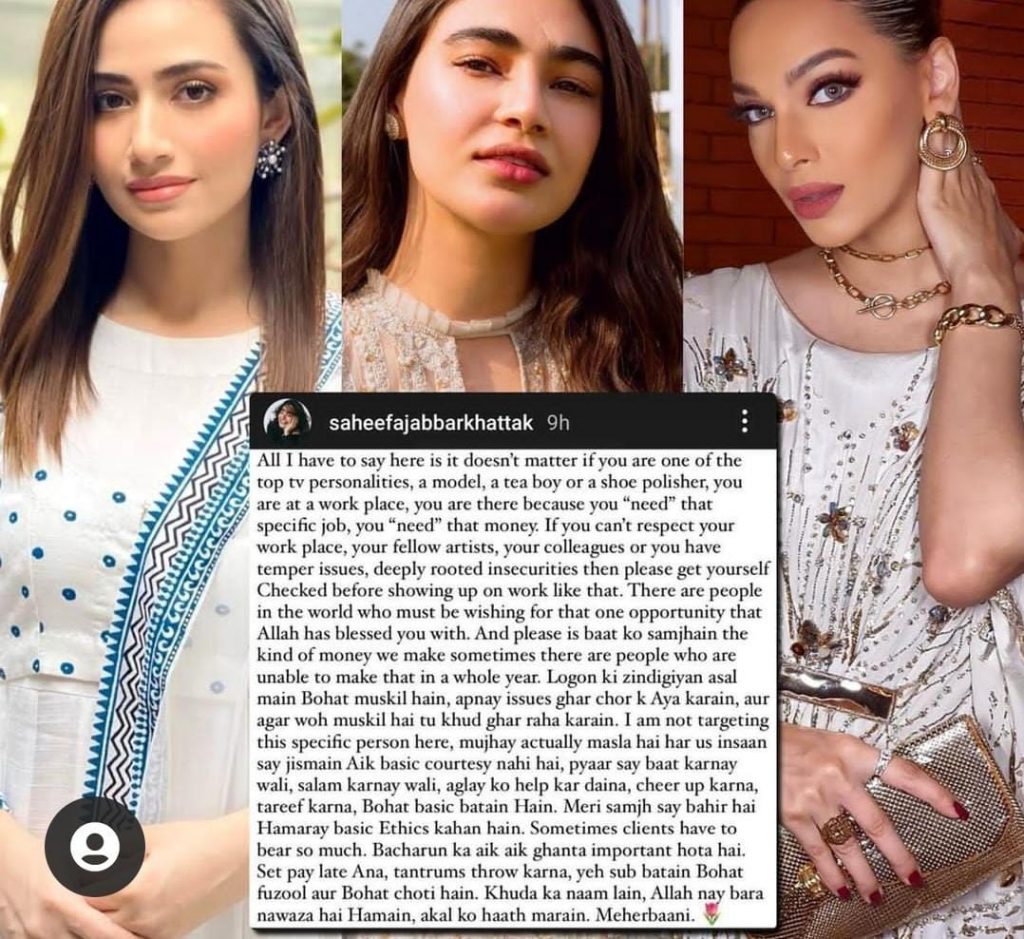 Stylist Anila Murtaza shared an Instagram story with a thought bubble with the name ‘Sana’ in it, and makeup artist Ikram Gohar stated that he knew it was none other than Sana Javed being discussed, calling her a “horrible and unprofessional actress.” Make-up artist Rhyan Thomas applauded those speaking up, sharing that he had the worst experience working with the star, stating that “people like them think no end to themselves.”