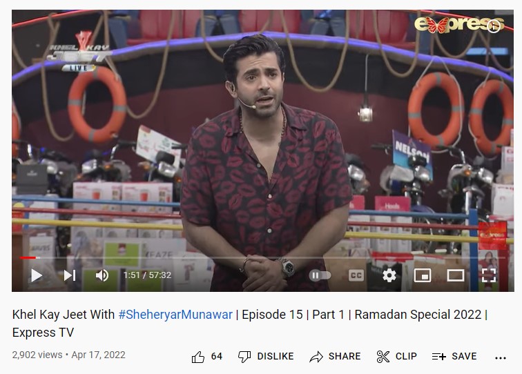 This game show was launched in the year of 2014. We have analysed an episode of ARY’s game show from Friday episode which has got around 434,513 views with 8,000 likes till April 22. This game show is based on the seven teams from different cities and each has a celebrity captain. In each team, the audience plays the game under the captain’s leadership. The winner’s team gets grand prizes. This year, the program has added one more team, Gujranwala Bulls. The concept of teams is similar to the Pakistan Super League (PSL). Some team captains are led by cricket players such as Shoaib Malik and Sarfaraz Ahmed.