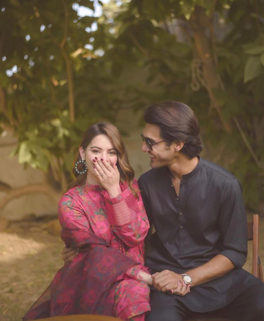 After months of teasing fans with loved-up pictures and a secret engagement, Minal Khan and Ahsan Mohsin Ikram have finally made things official, sharing pictures from their baat paki on social media.