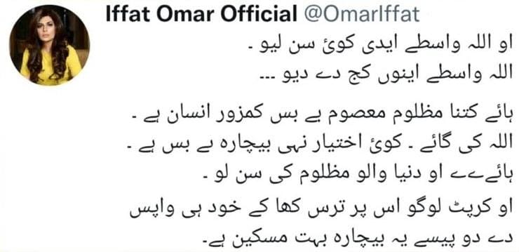 Earlier Iffat tweeted sarcastically about PM Imran Khan.
