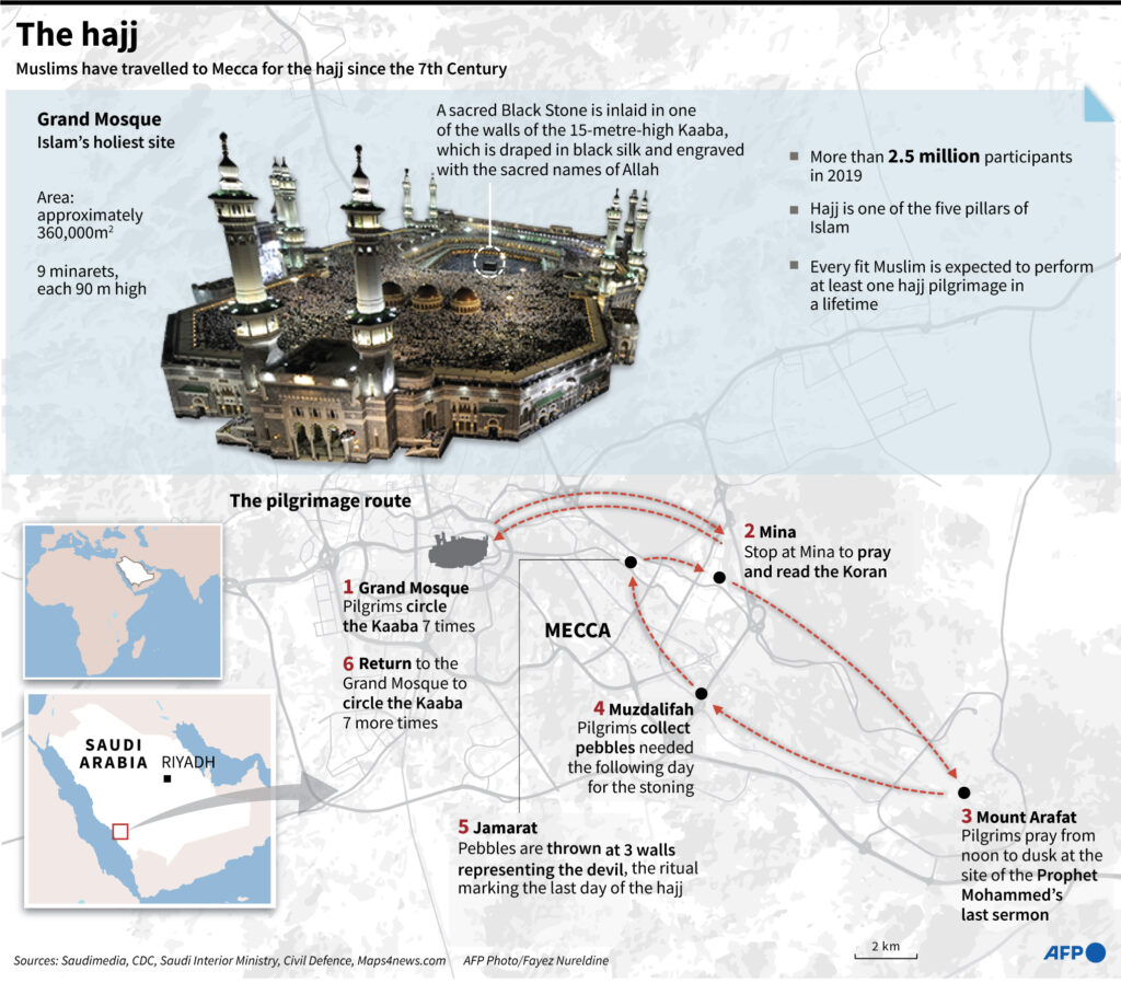 Several health facilities, mobile clinics and ambulances are also available on hand while workers continuously clean and disinfect the holy site, in uniforms resembling those of hospital staff.