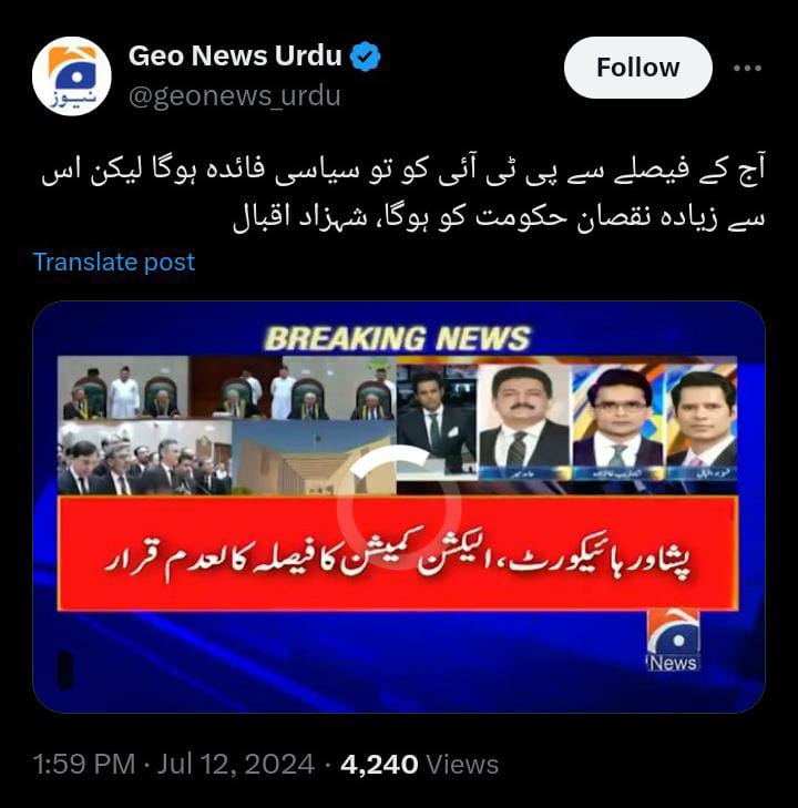 Journalist Shehzad Iqbal said while speaking on Geo News that the court’s decision benefits PTI but is not good news for the coalition government.