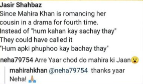 Replying to her fan, the Bin Roye star said: “Thanks yar Neha!“