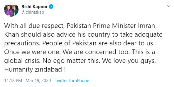 A few weeks before his demise, Kapoor had asked Prime Minister Imran Khan to “advise his country to take adequate precautions.”