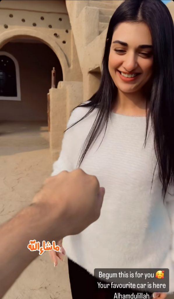 Sharing her joy and gratitude on Instagram , Sarah expressed her appreciation for Falak’s gesture, stating, “Alhamdulillah! He said “you deserve the best of everything” and handed me the keys. Wallahi somebody tell him I already got the best one in the world, that’s him!”