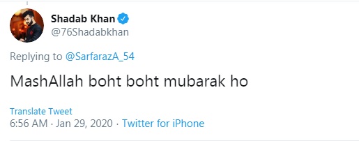 Other cricketers who sent their congratulations included Umar Gul, Hassan Ali and Shadab Khan.