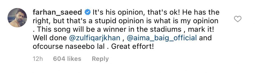 “It’s his opinion, that’s ok! He has the right, but that’s a stupid opinion is what is my opinion,” stated Farhan Saeed.