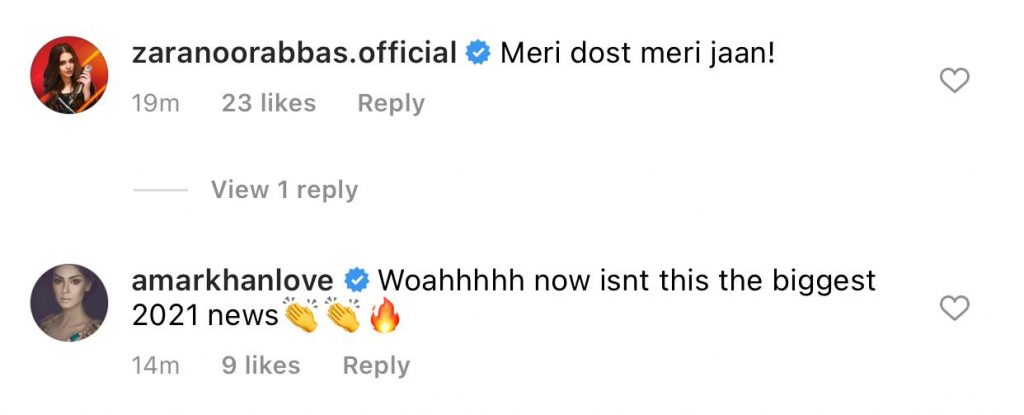 Mira Sethi said she was thrilled with the news. The two worked together in Ye Dil Mera.