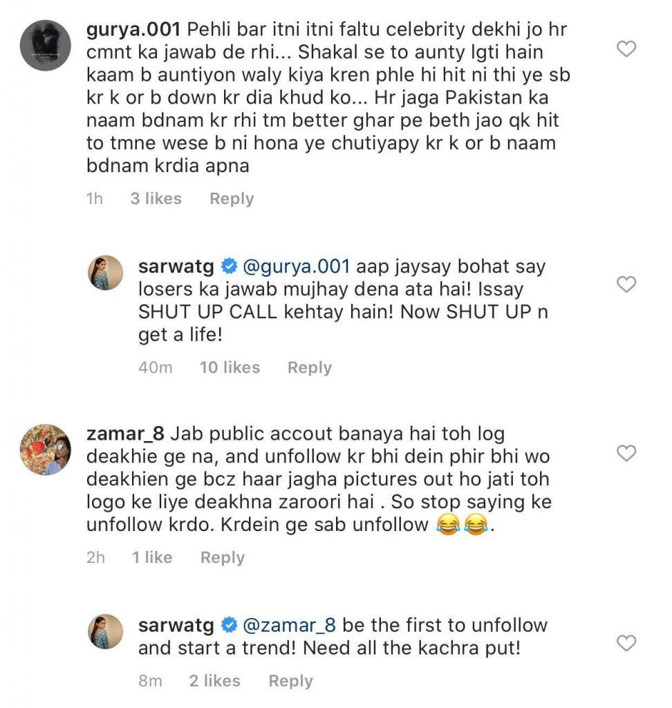 Sarwat’s post triggered even more hate and the actor took to personally replying to each and every troll and telling them to unfollow her.