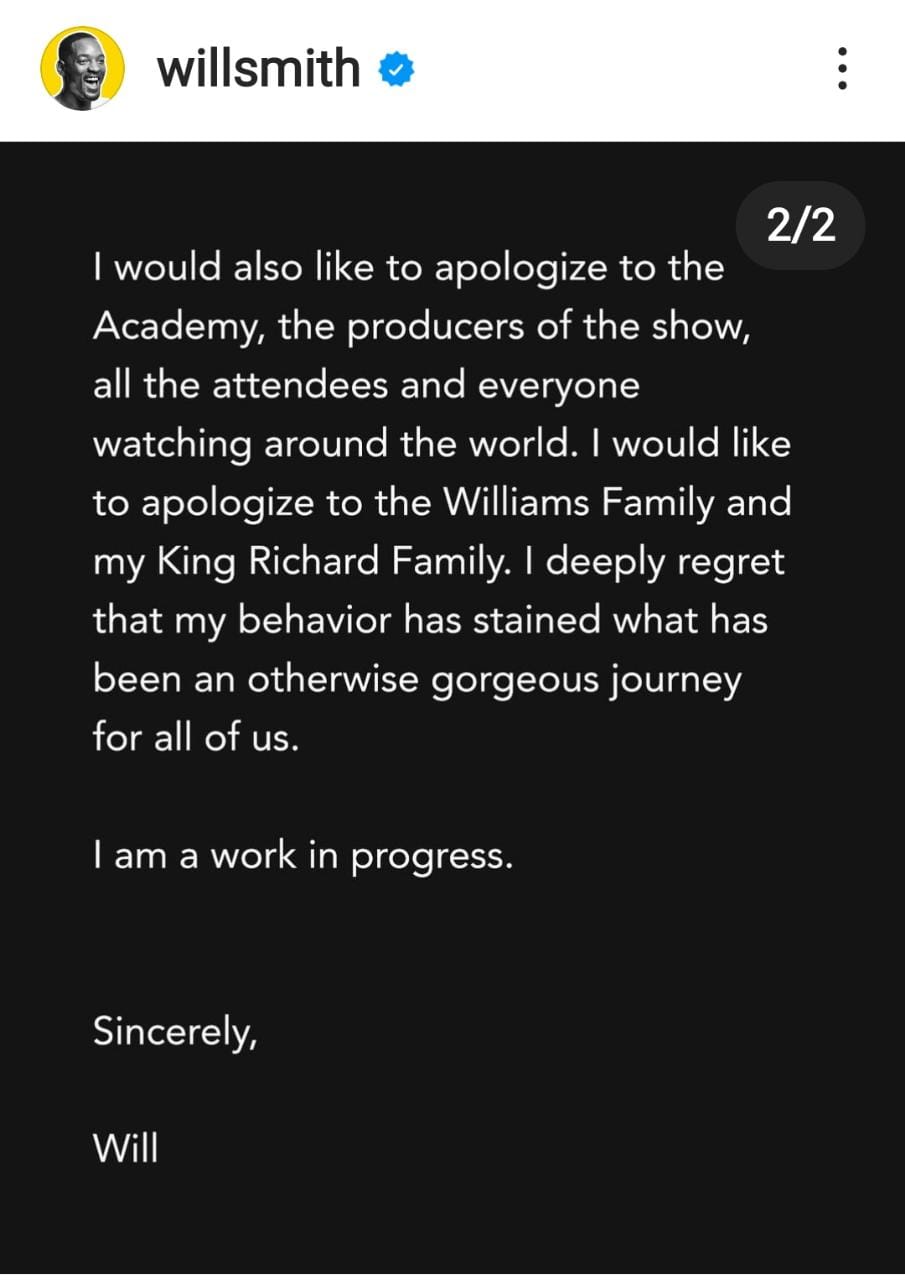 Although Will posted an apology on social media.